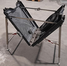 Fahrbares Krankentragen-Untergestell für den Patiententransport auf unwegsamen Gelände, als OP-Tisch angepasst, faltbar, stapelbar. Patentiert.